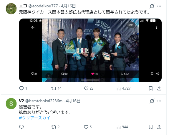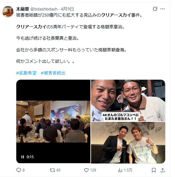 4月9日には格闘家の皇治さんおよび朝倉海さんの関与が明らかに。