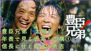 大河ドラマ 豊臣兄弟|太閤記|年表で見る史実と虚構①信長に仕え始める秀吉 2026年の大河ドラマ『豊臣兄弟』は豊臣秀吉の弟・豊臣秀長が主人公。 この機会に豊臣秀吉を主人公にした司馬遼太郎先生の名作『太閤記』を読み直された方も多いのではないでしょうか。 この記事では『太閤記』の内容を史実と突き合わせ、年表形... 2026.03.17 大河ドラマ